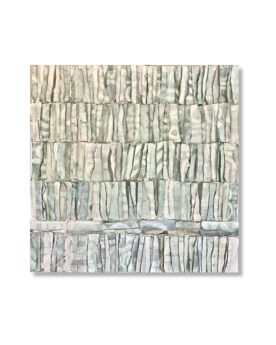 Pigmented mud and paper sculpture on canvas, 48"X48"